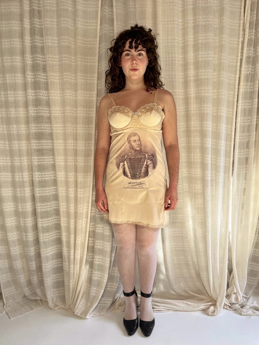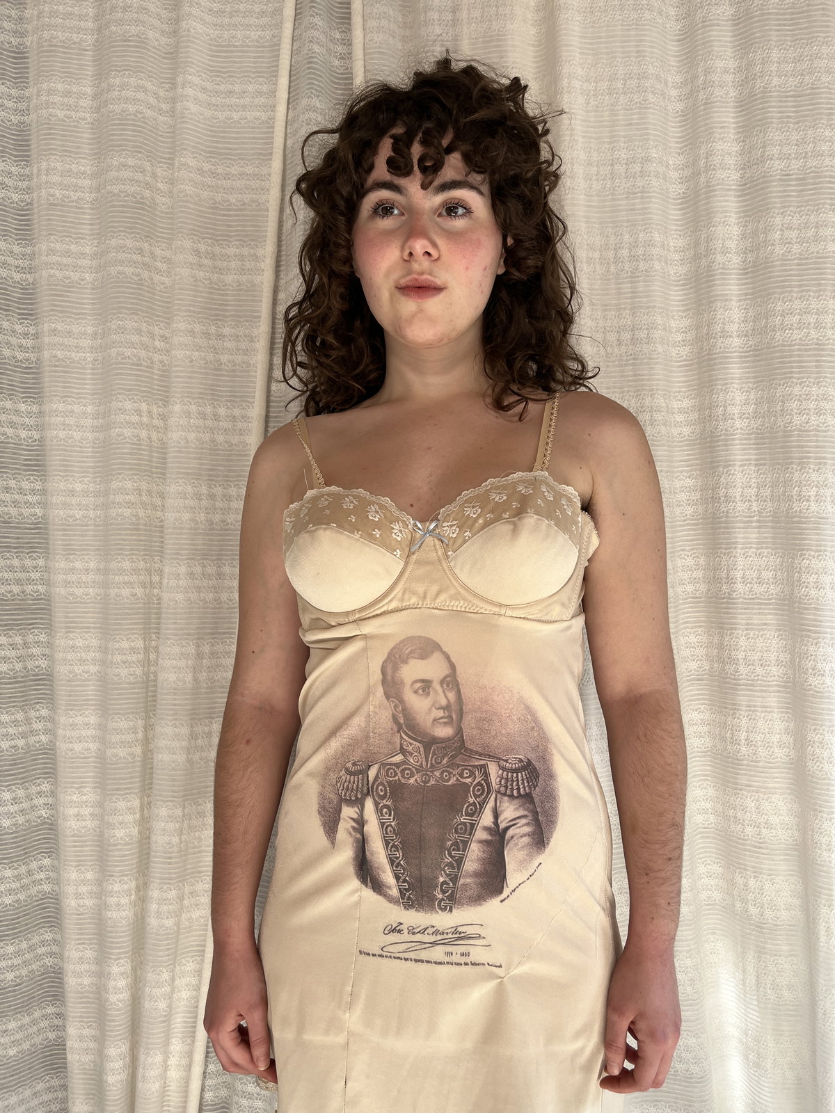 Vestido con taza de pintura de Jose de San Martin con su firma en la parte superior