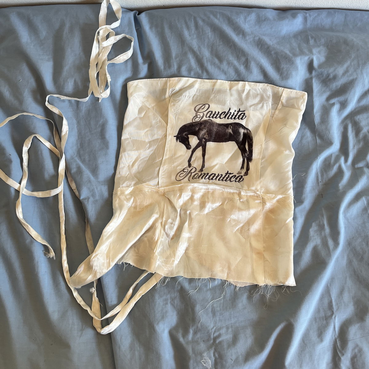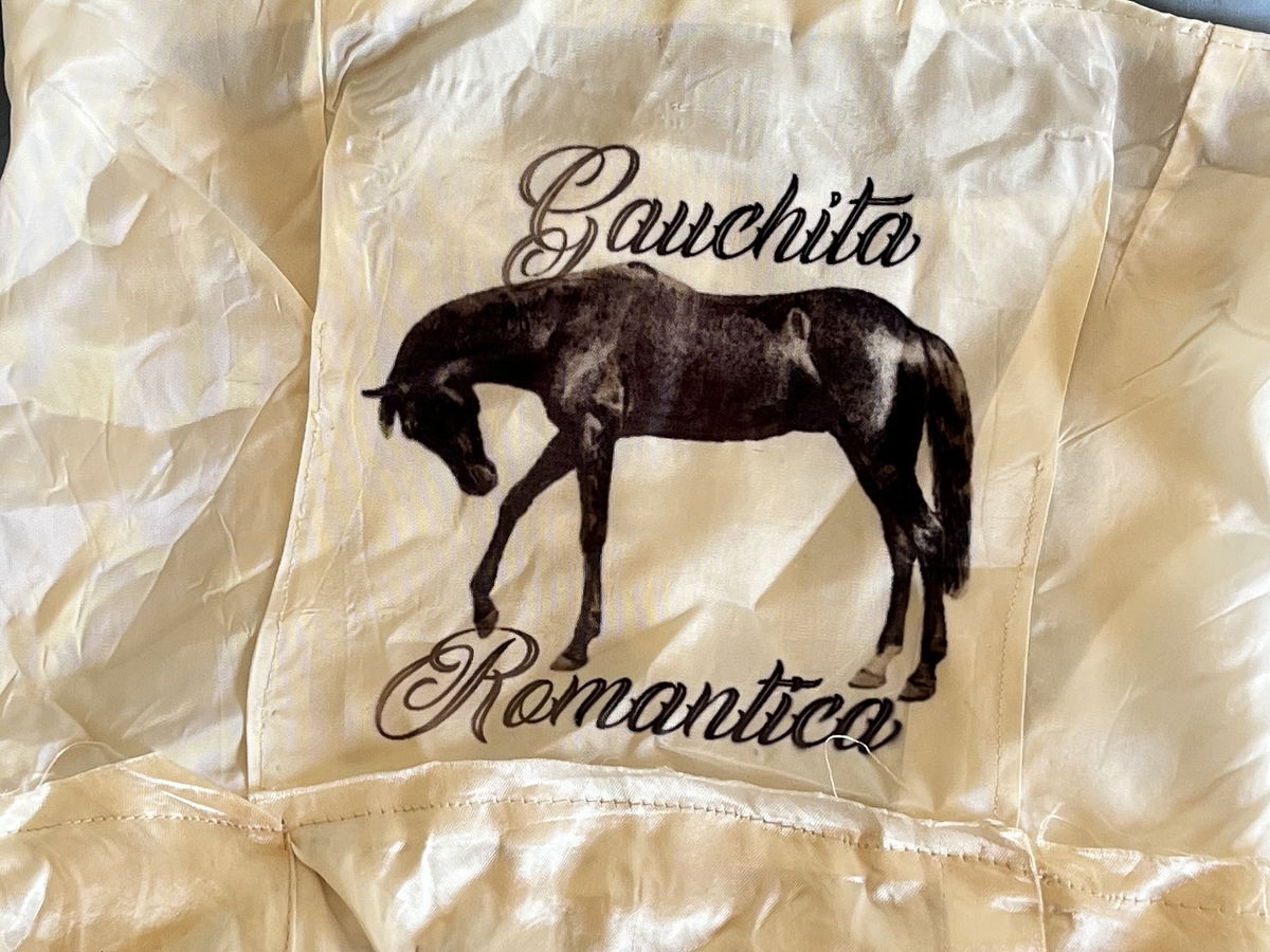 Corset talle 2/3 con sublimación de caballo negro con una frase enmarcada “ gauchita romántica “