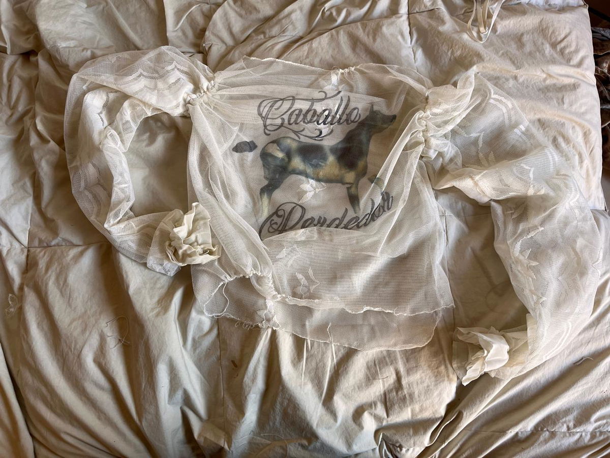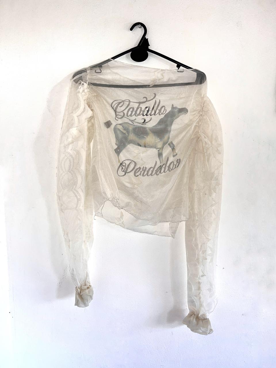 remera talle M hecha con cortina vintage reciclada
