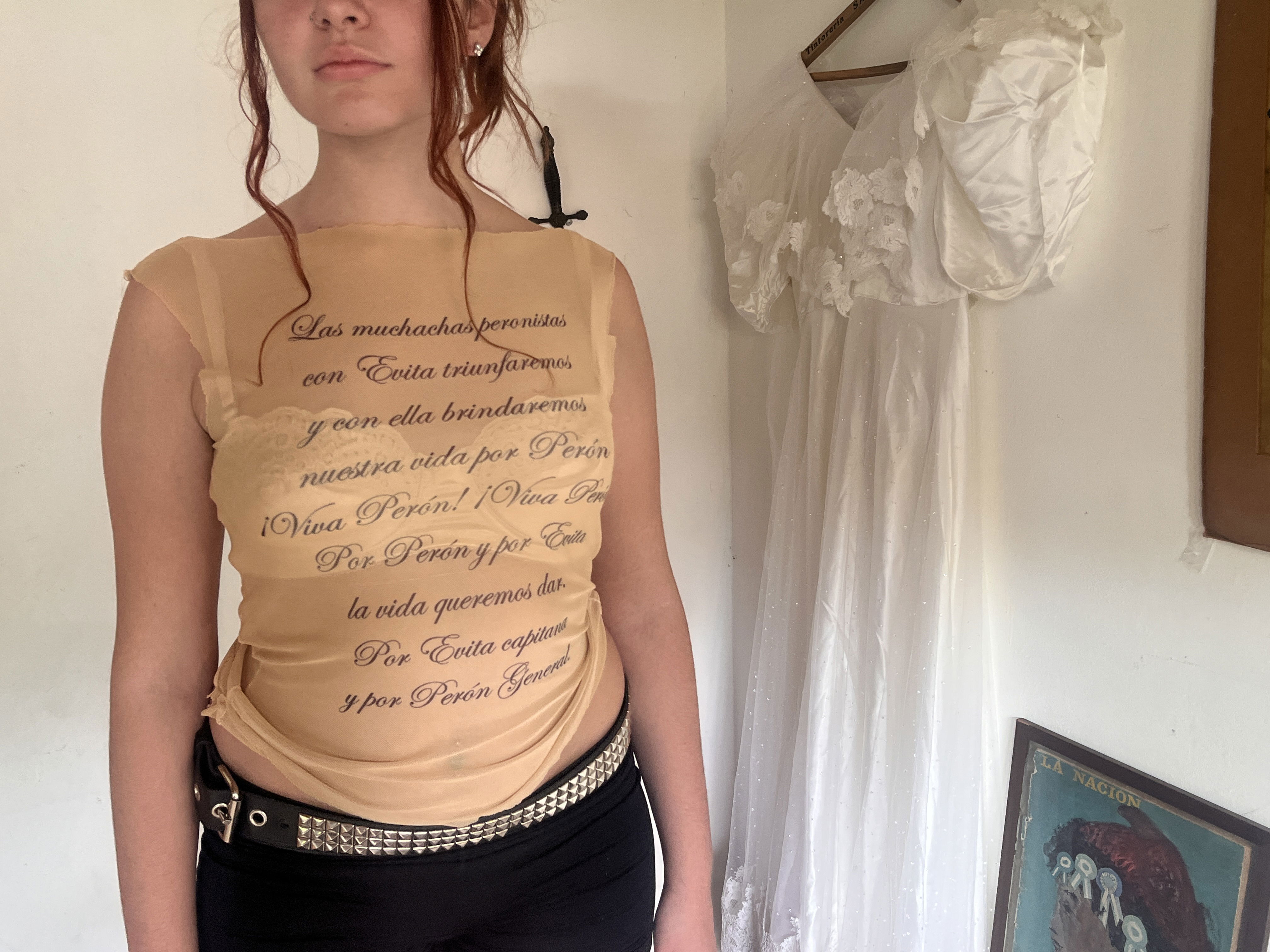 Remera transparente con sublimación de la Marcha Evita Capitana en su frente