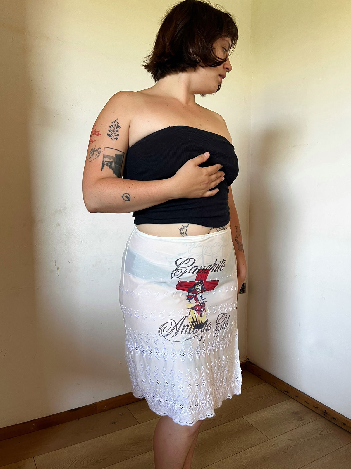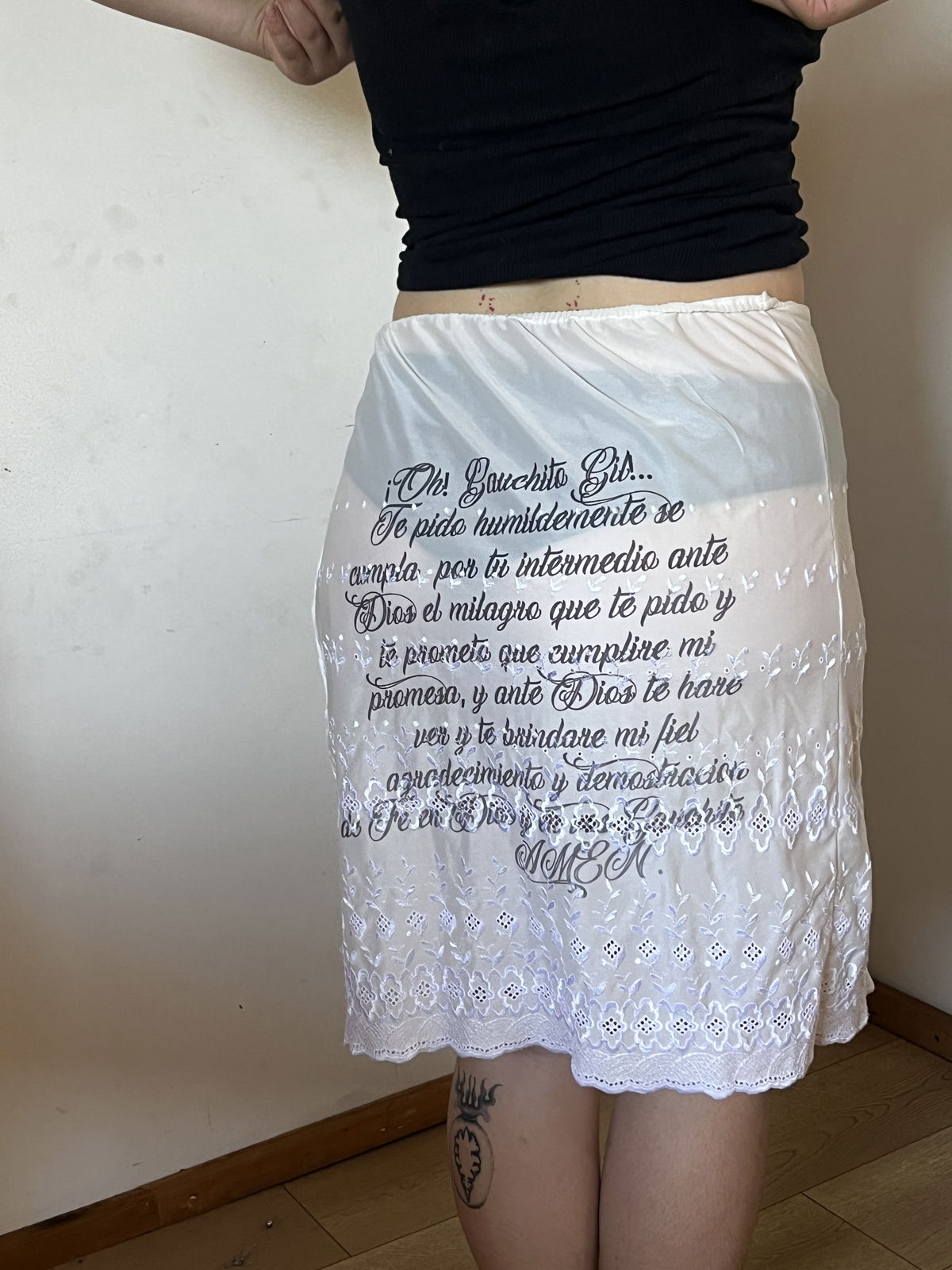 Pollera Gauchito Gil blanca