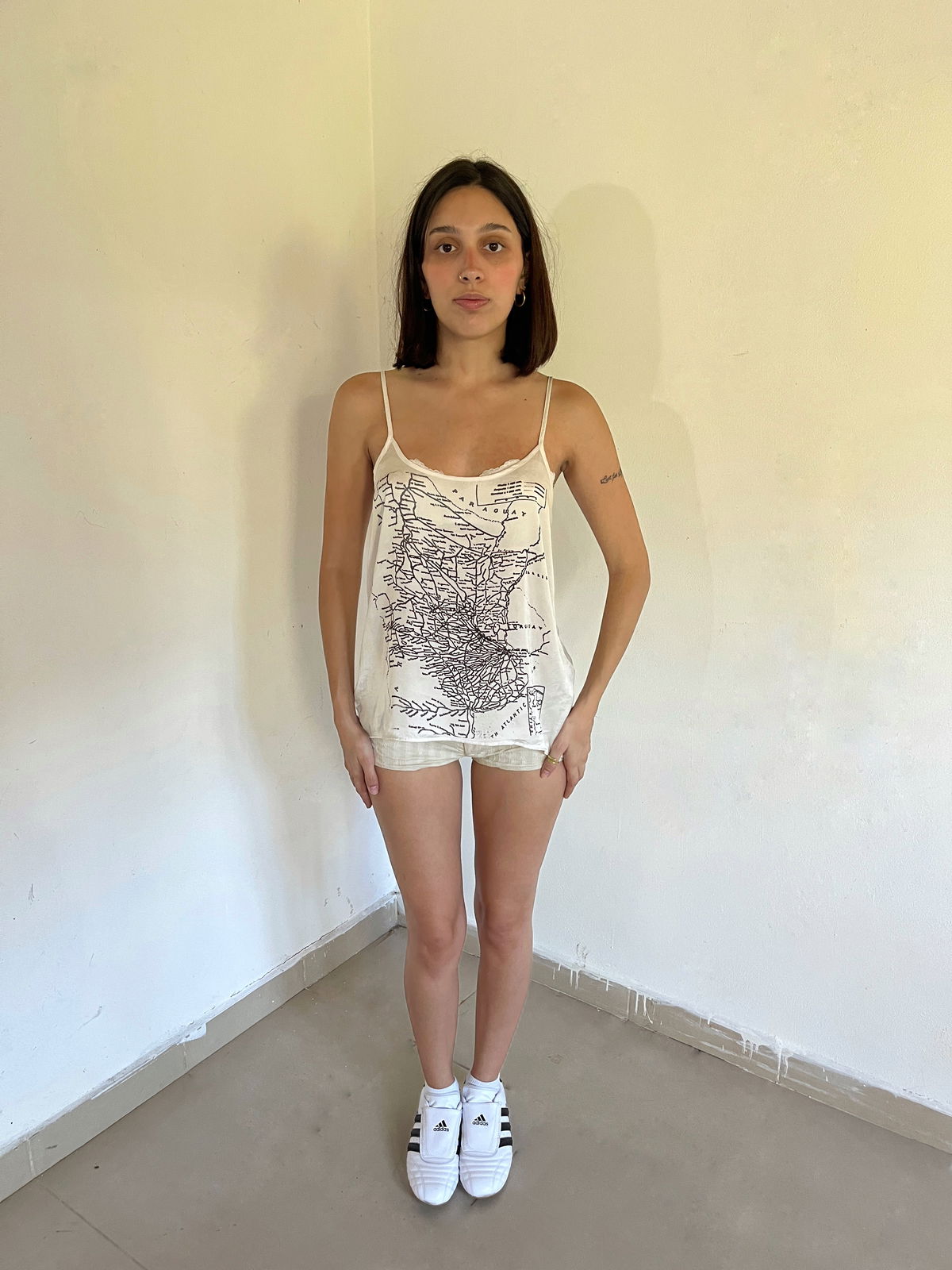 remera musculosa suelta con sublimacion de trenes antes de la privatizacion de trenes argentinos